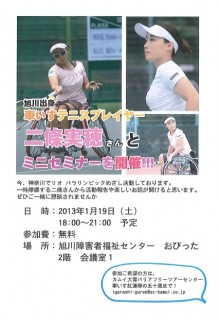 旭川出身の車いすテニスプレイヤー二條実穂さんとミニセミナーを開催いたします!