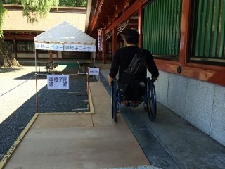会場は、護国神社で車いす駐車場・トイレ・専用通路・スロープの設置確保