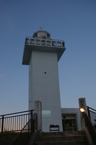 ふだんは見ることができない、夕闇に沈む灯台をご覧ください。