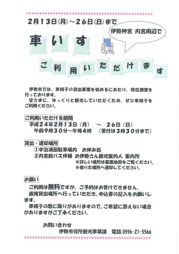 で、前々から、伊勢市役所さんに、「伊勢でも車いすレンタル始めませんか~?」と