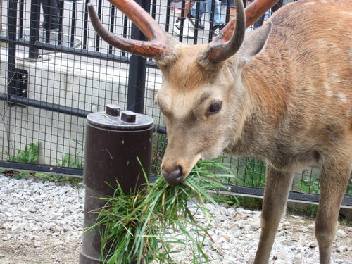 写真2:ごはん中のエゾシカ。もっしゃもっしゃもっしゃ・・・