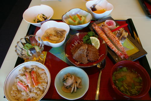 写真2:私たちがいただいたランチ。お盆に乗り切らない!