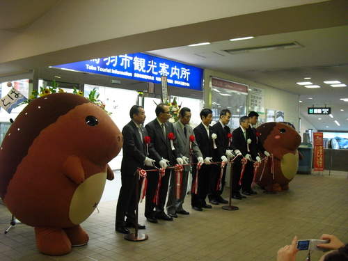さて、観光案内所のオープニングセレモニーには、鳥羽のご当地バーガー「とばーがー」のマスコット、「トーバ」と「トパティ」もご来場~♪