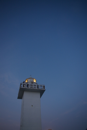 ふだんは見ることができない、夕闇に沈む灯台をご覧ください。