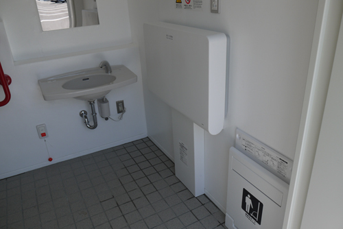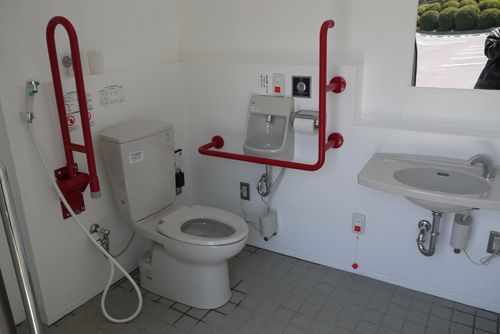 車イス対応はもちろん、着替え台(チェンジングボード)・ベビーシート・オストメイト対応と大変充実した多目的トイレです。