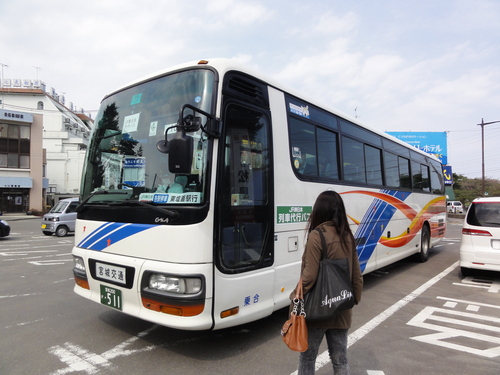 本日のバスは行き・帰りとも「宮城交通」のハイデッカー車でした。乗降口は前方一箇所で幅が狭く、ステップ有、しかもL字なので、年配のお客様には結構きつい。