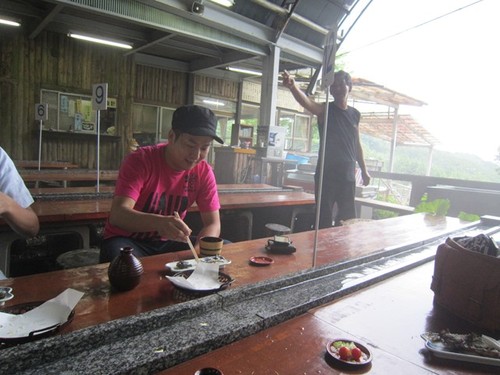 流しそうめんの司令塔よろしく、たまにいたずらで大量のそうめんが流れ