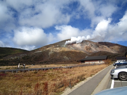 写真3:浄土平レストハウス駐車場からの一切経山の噴煙