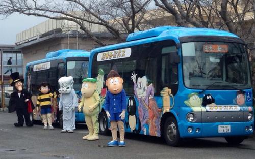 14日に 境港市の循環バス 「はまるーぷバス」2台の車体に