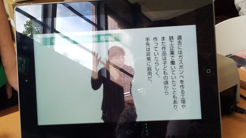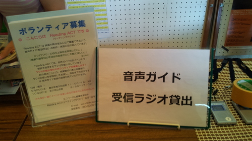 現在、県内で色々な催しの中で、米子市美術館で開催の「アール・ブリュット展」のボランティアに午後から行ってきました。聴覚障がい者の方のために、手話&文字での情報保障のタブレットも10台。手話通訳者と手話でコミュニケーションがとれるタブレットもありました。ただ、残念だったのは、点字ブロックの上に泥よけマットが敷かれていたのです。「2カ所」もう少し、理解して欲しいな~と、思った5時間でした。アンケート用紙に色々、書きました。