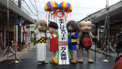 鬼太郎たちが餅をついて、観光客の方達に・・