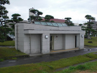 駐車場から歩道を通ってトイレへ。アップダウンはあるが、段差なく行くことができる。 |