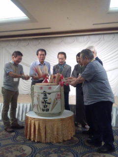 懇親会開催に当たり、鏡開きが開催されました。