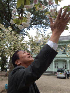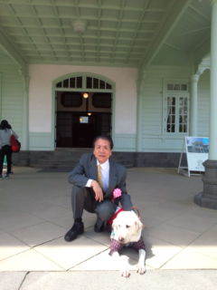 桜もとても奇麗です!アランくんと一緒に写しました。