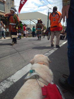 武者行列を見るアランくん。