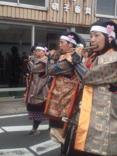 大意子や法螺貝の音!行列が進むとまた後列から太鼓や法螺貝の音が聞こえてきます。