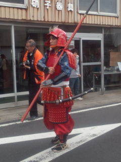 お昼前にアランくんと一緒に松江武者行列出発地点の天神町に歩いて出かけました。暖かく汗もでてきました。